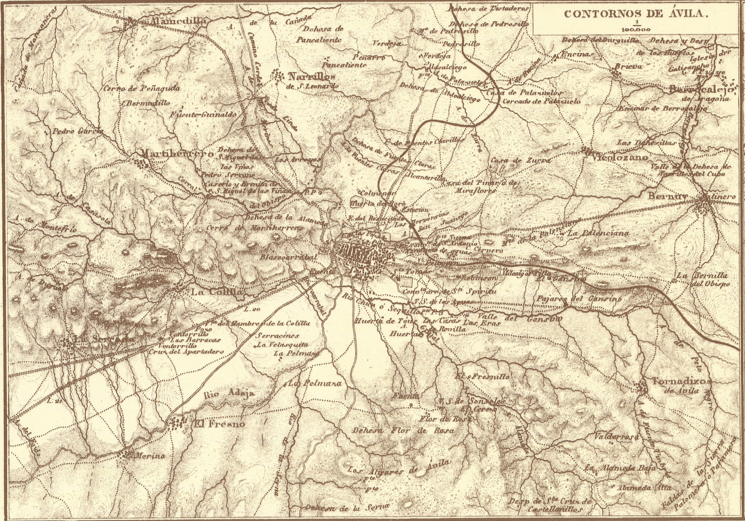 Situada a pocos kilómetros de la ciudad, La Serna aparece ya documentada en la Edad Media como una gran finca agrícola y ganadera. Su nombre figura en mapas históricos, como este mapa de Francisco Coello de 1864, donde se aprecia el nombre de la Dehesa integrada en el territorio que rodea a Ávila.